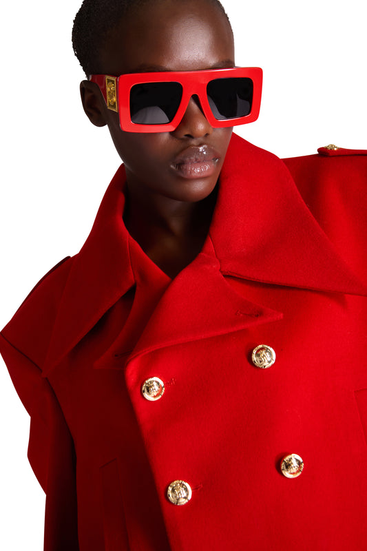 Hand Embroidered Peak Lapel Double Breasted Long Coat