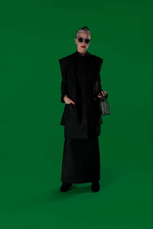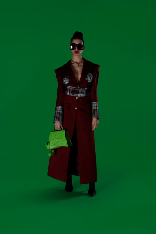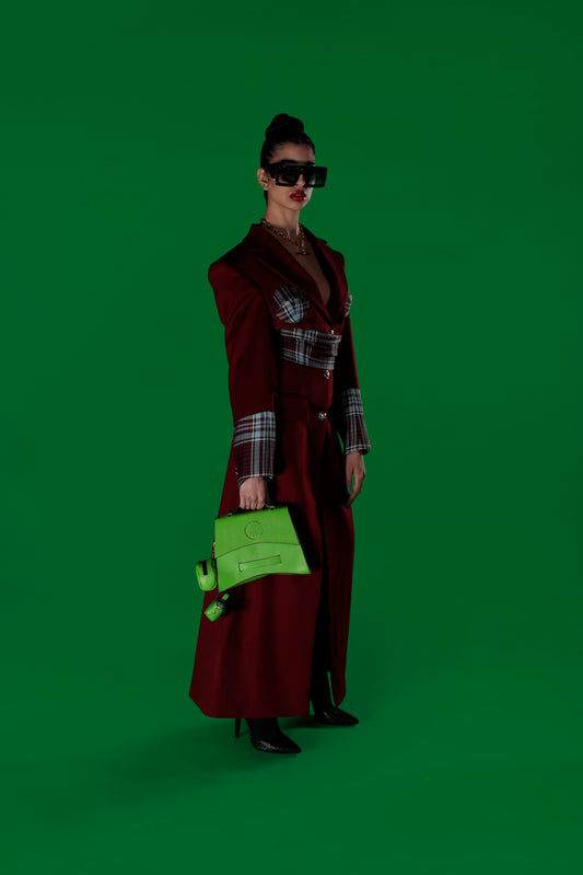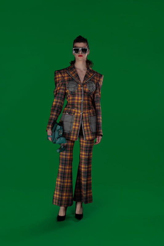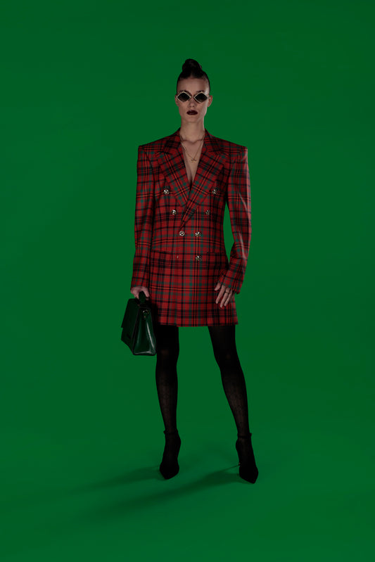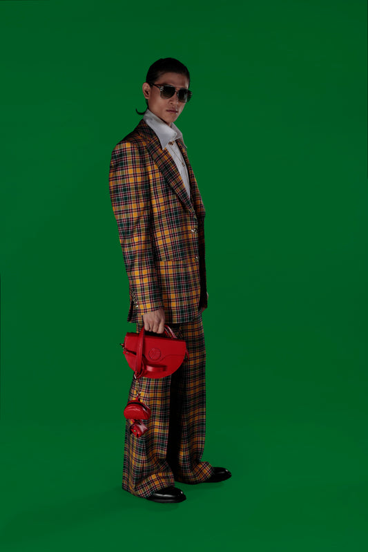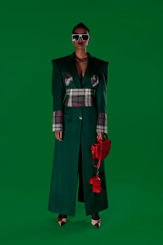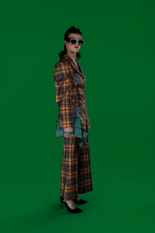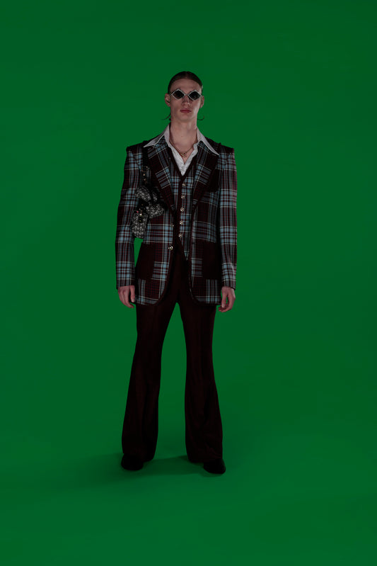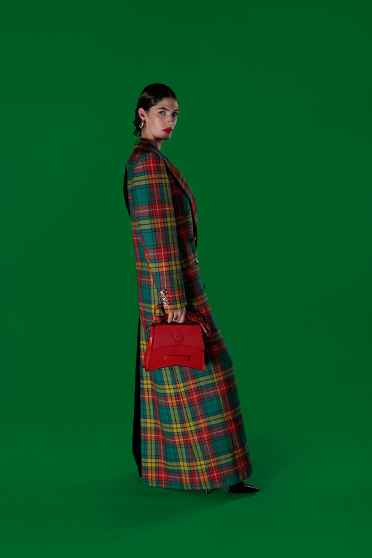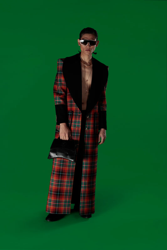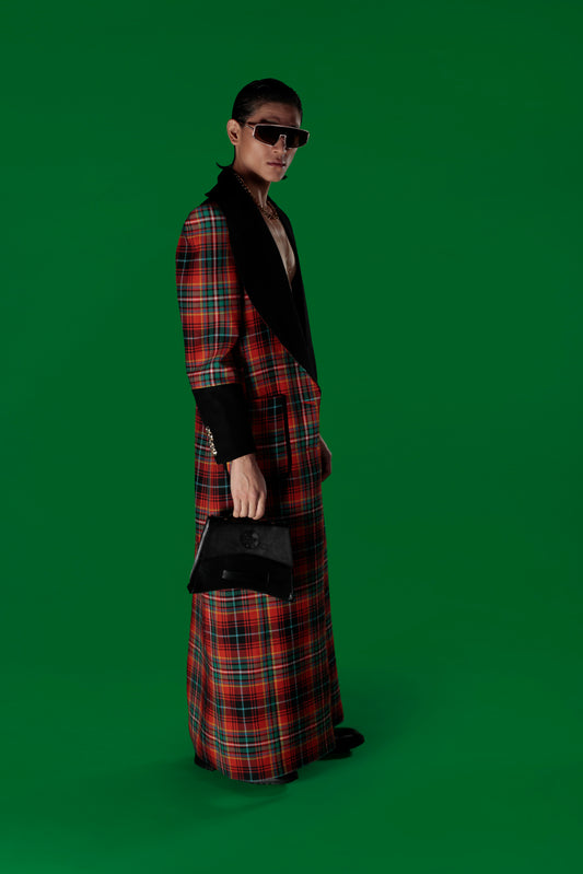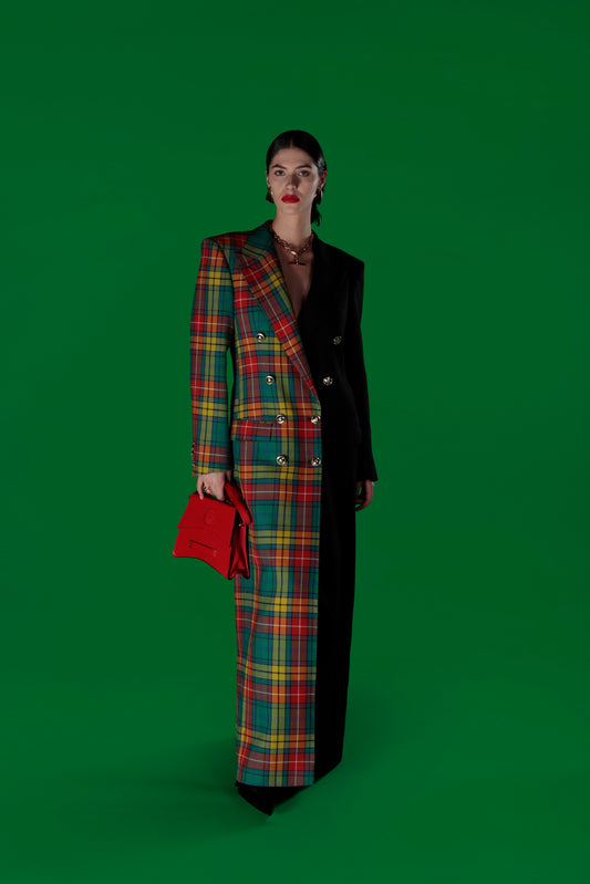It encompasses the creative director, Naeem Anthony's, 'all or nothing' mindset, with the contrasts between lengths, textures, and colours. The array of different colours used in the collection represent different cultures and diversity. This compliments the exclusive Helen Anthony checked and tartan fabrics that are also used in the collection.