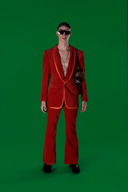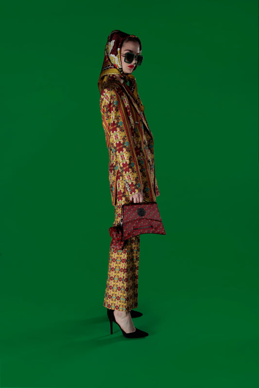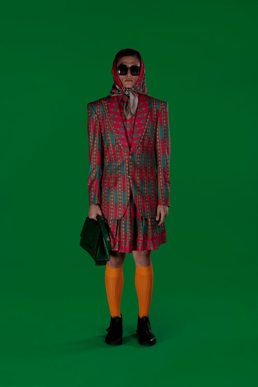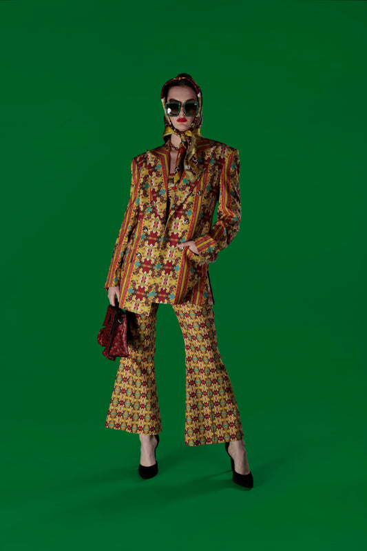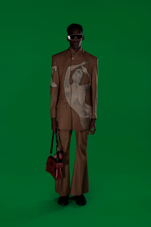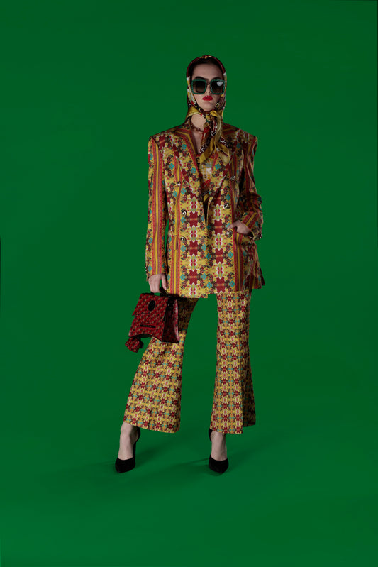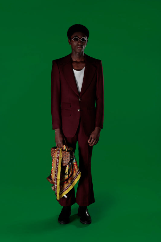 With a boundless approach towards self-expression, ‘Artisan Liberation’ is redefining individuality and self-acceptance. Using que cards from the powerhouse decade of the 1970’s, the collection sees a parade of prints that seamlessly sing to the same tune and adorn his staple looks. Vibrant pattern play, bold colours and bohemian bravery tie together this love of freedom. Oversized tailoring allowing him and her to share this multi-colour wardrobe of liberty. Tailoring kept to his masterful ways, welcoming back longline coats, oversized panels and shoulders wide enough to own every room.