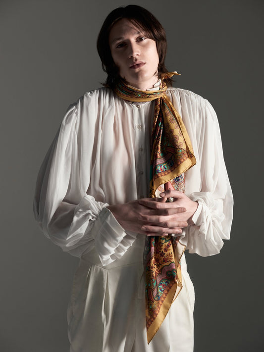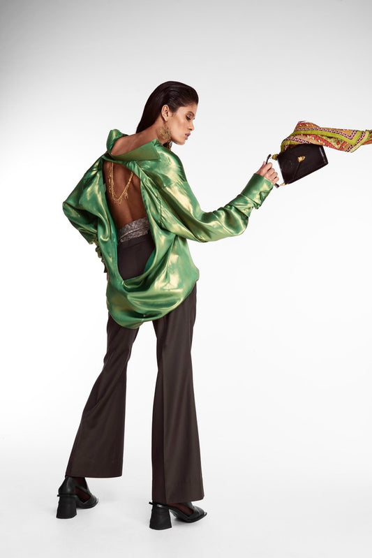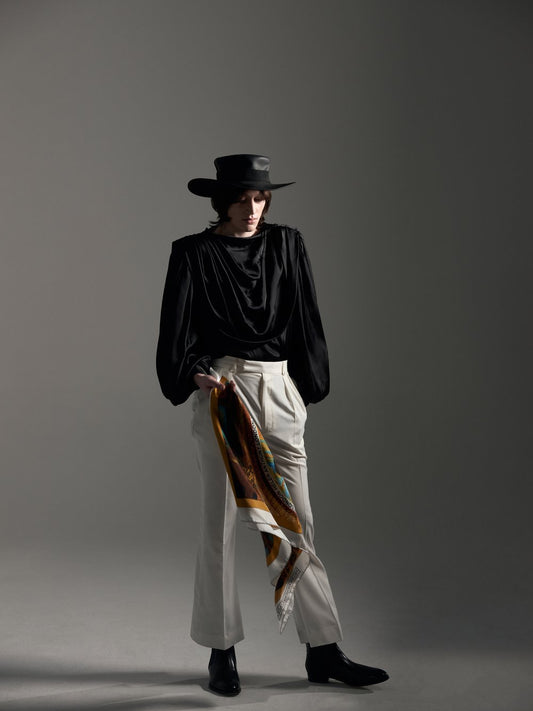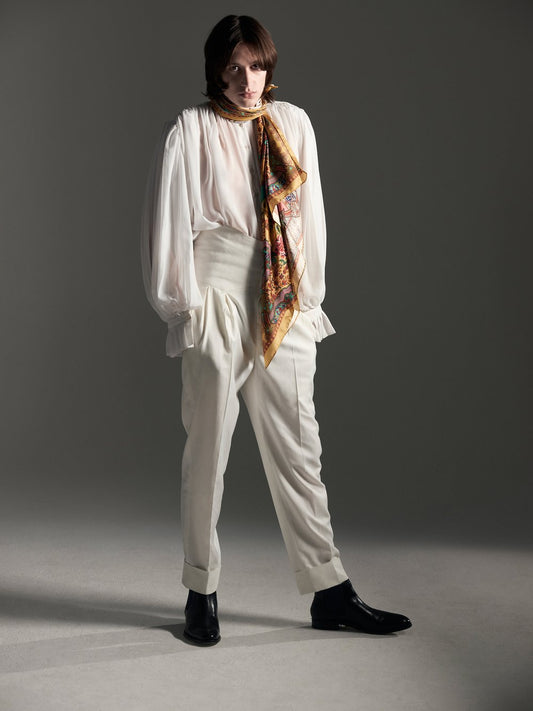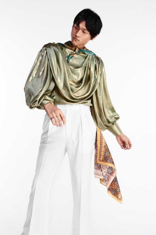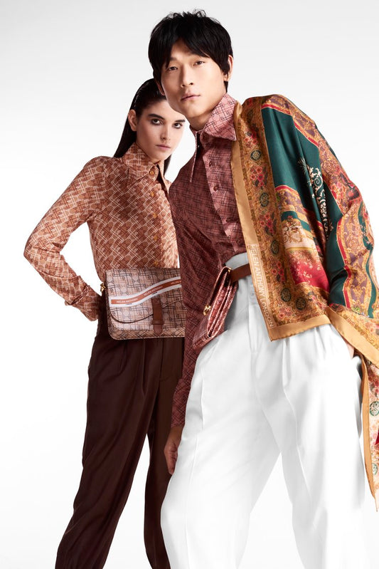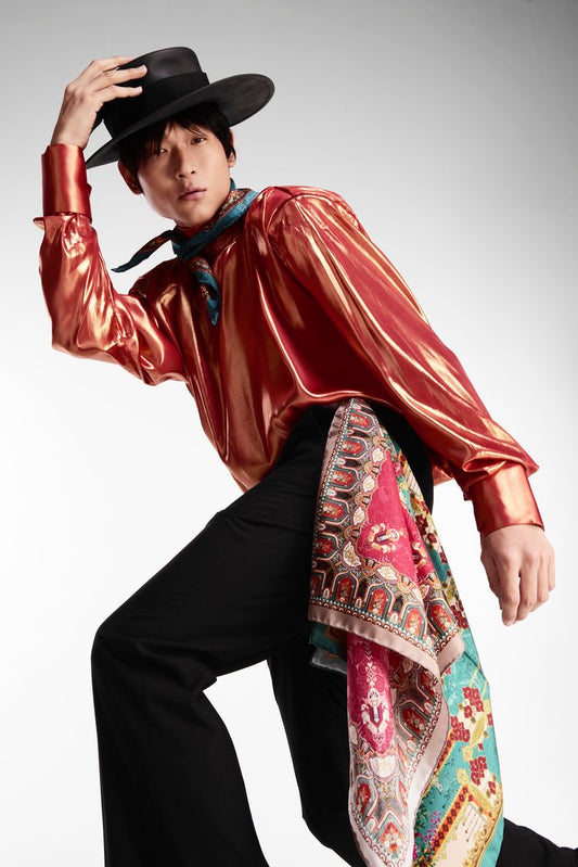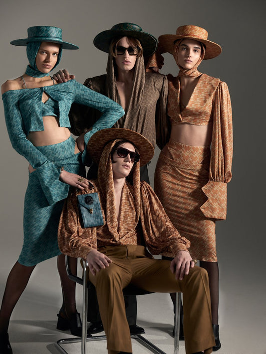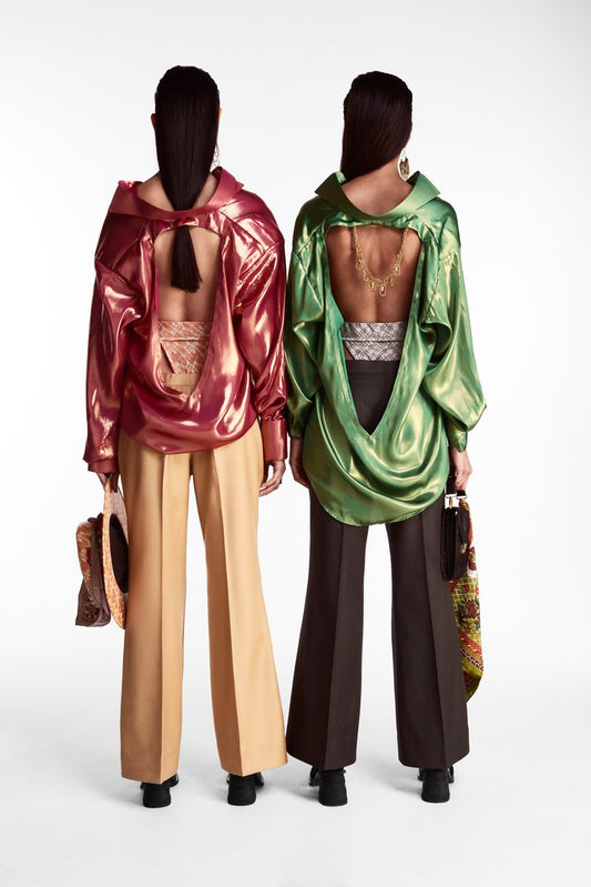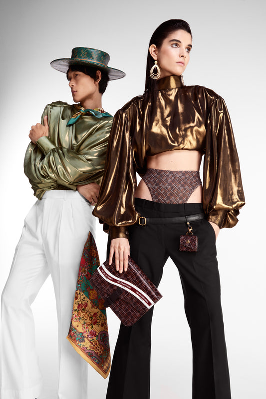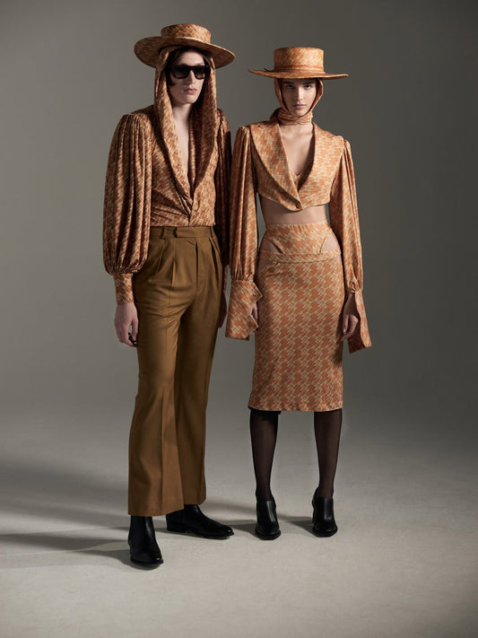 Step away from the pandemic gloom and slow, pedestrian start to 2021. Helen Anthony are showcasing the collection as a sign of hope and of the positive things to come. As a more unified and focused world slowly emerges into a new post-pandemic phase, this beautiful unisex collection embraces the concept of unification. Influenced by the familiar shapes, patterns and structures of East and West, with vibrant colours and the draping lines of a dupatta, the collection is poised as a non-binary statement for individuals with a keen eye for contemporary style and quality. Reflective of a more positive time, the cross-cutting 1970’s influence with large collars, flamboyant trouser silhouettes and powerful wide shoulders remains a signature of Helen Anthony,