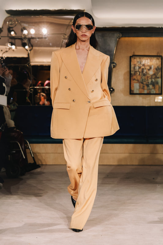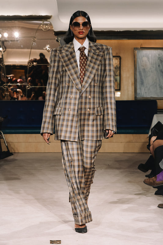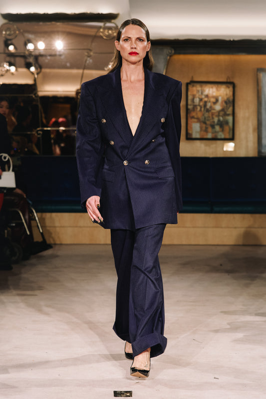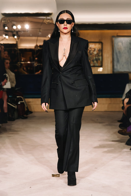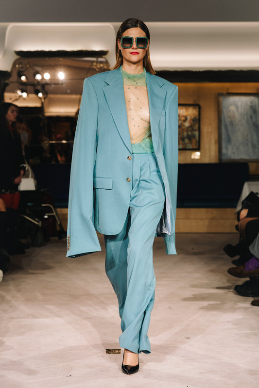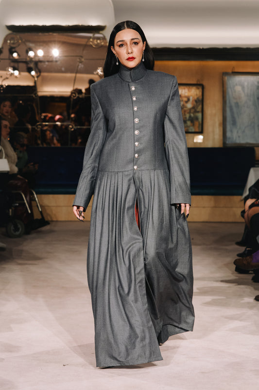 At its heart, Helen Anthony is a brand with a classic British tailoring background that creates incredibly well-structured clothing. However, Naeem Anthony takes the art of British tailoring and creates eccentric pieces that can be worn by all genders. By combining well-structured tailoring with a variation of lengths, colours, fabrics and broad shoulders which represent empowerment, Naeem has created a playful silhouette that is distinctly Helen Anthony.