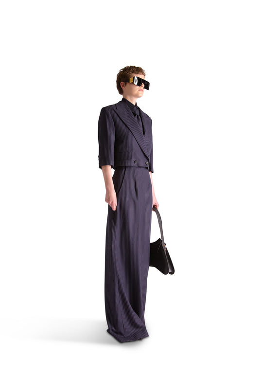 Tailored Wool Long Pinstripe Skirt
