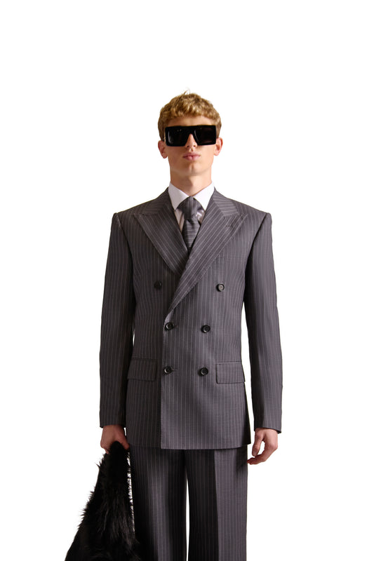 Peak Lapel Double Breasted Pinstripe Wool Blazer