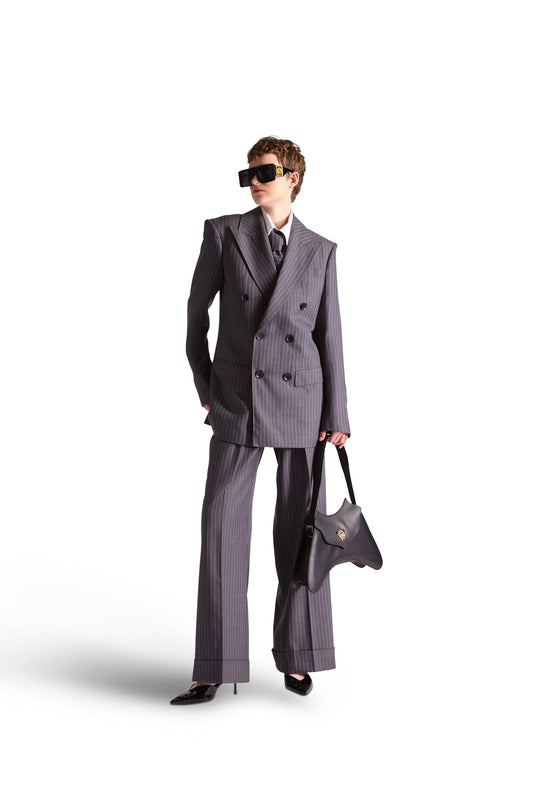 Helen Anthony tailored plaid wide leg, high waisted trousers made with 100% British wool.